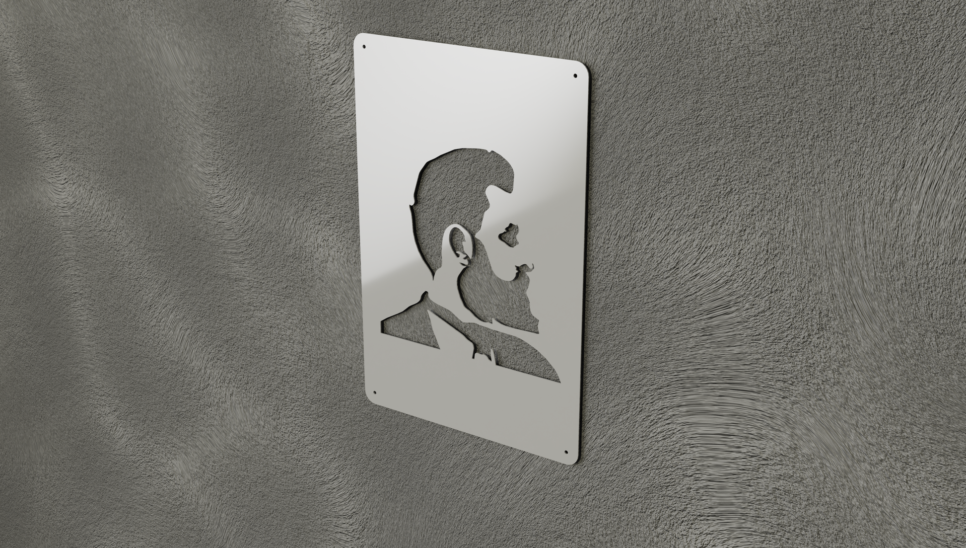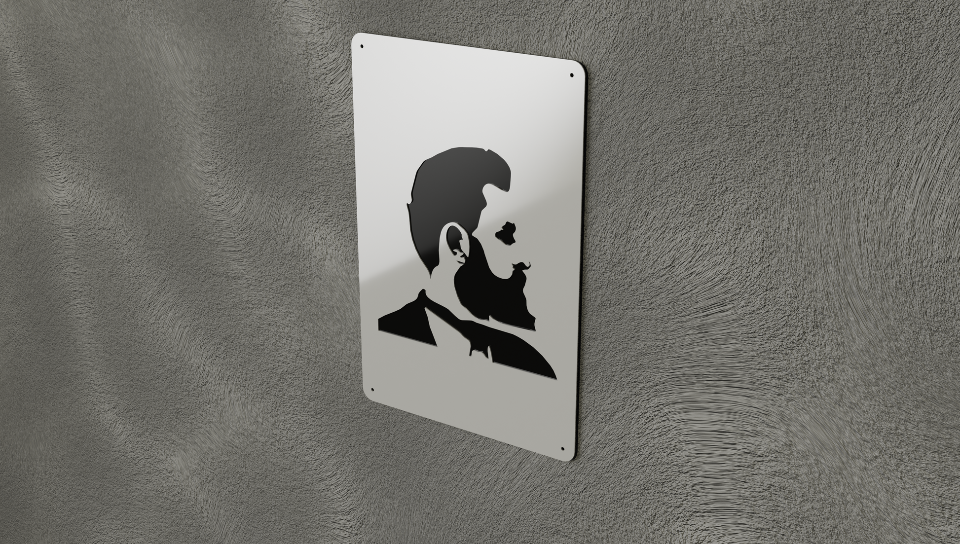 Изработена од метална плоча со дебелина од 2mm, декорацијата е создадена со висок степен на CNC прецизност, што овозможува секој детал на ликот да биде совршено изведен. Металната текстура и остриот дизајн создаваат впечатлива игра на сенки и светлина, при што делото зрачи со историска сила и достоинство.