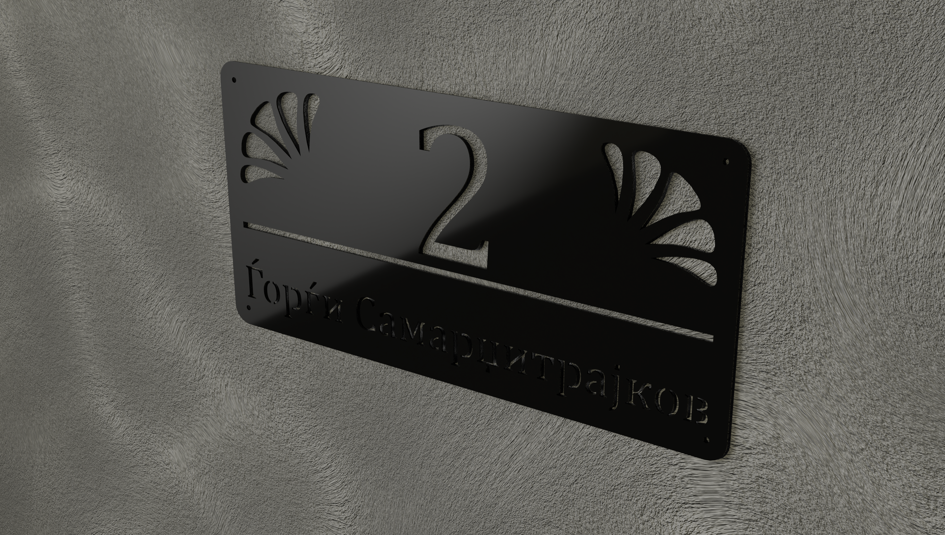 Дизајнот комбинира традиционален македонски дух и современа естетика, создавајќи совршен баланс помеѓу трајност и елеганција. Благодарение на цврстината на металот, таблата е отпорна на временски услови, а нејзиниот елегантен изглед ќе го збогати фасадниот простор со раскош и софистицираност.