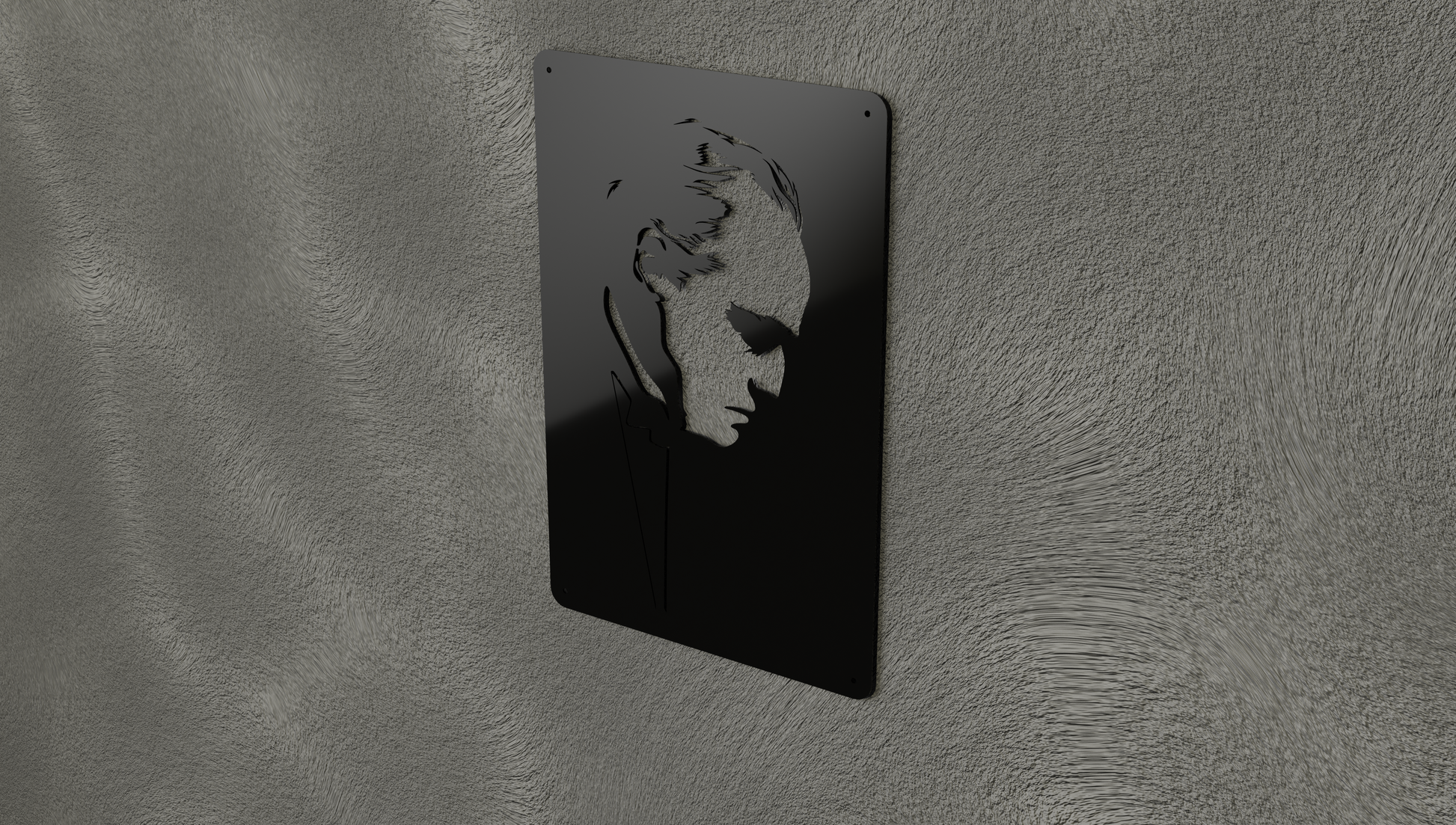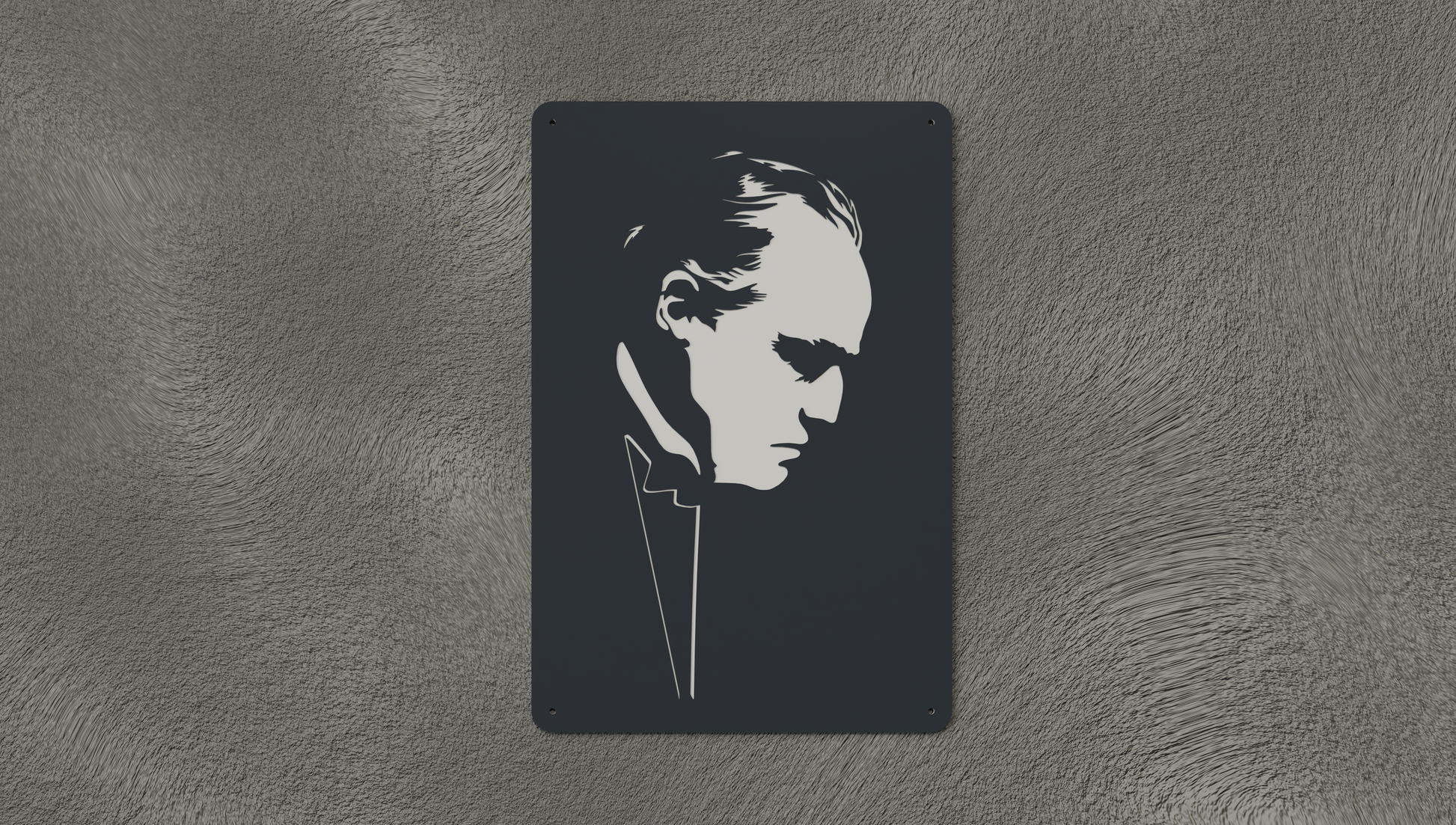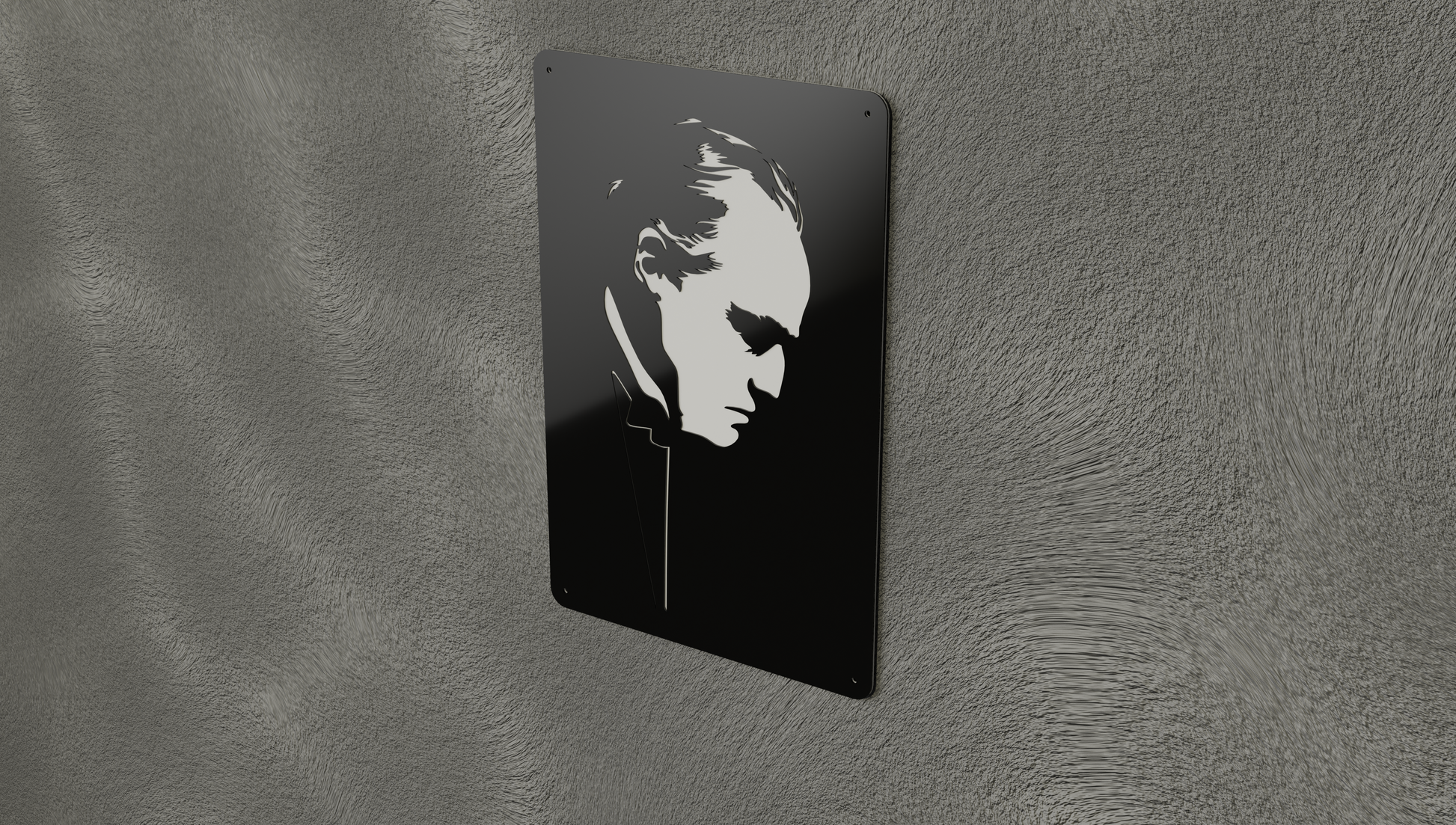 Двослојна изработка – горна плоча со дизајнот на Vito Corleone и долна бела метална плоча како позадина, за нагласен контраст и длабочина.