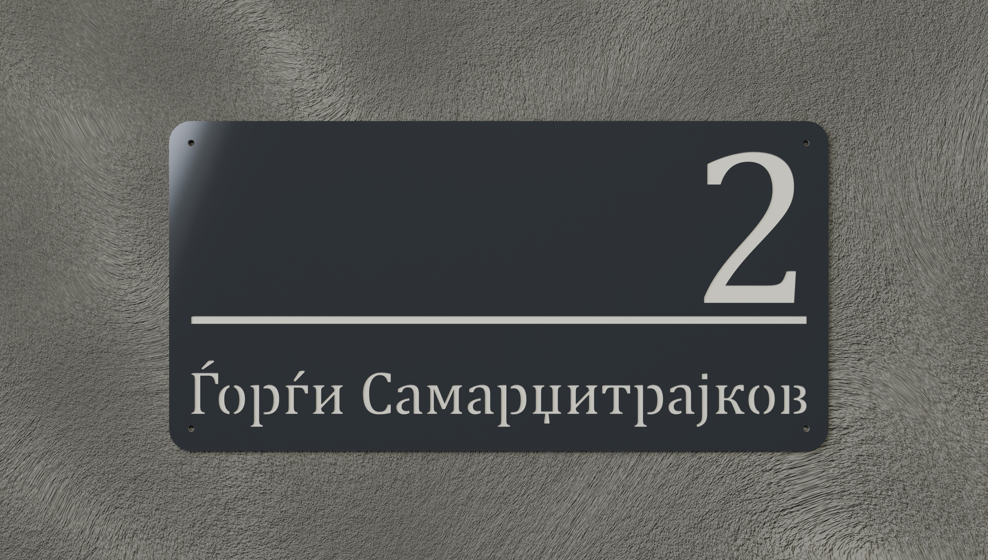 Додадете уникатен стил и префинетост на вашиот дом со оваа ексклузивна куќна табла , изработена од висококвалитетен метален лим со површина од 2mm . Секоја табла е изработена со најнова CNC технологија , што има беспрекорна прецизност, чисти линии и модерен изглед.