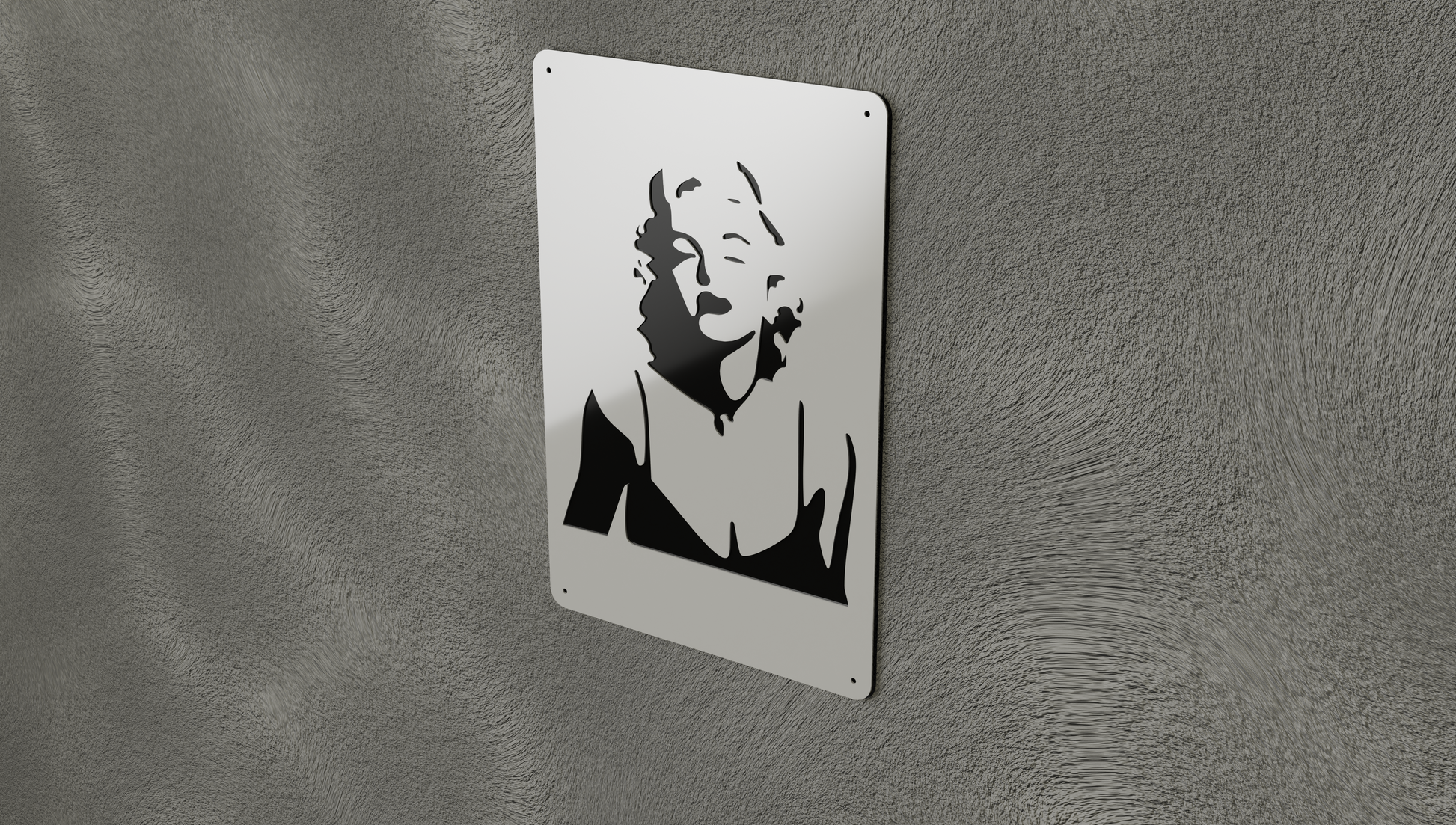 Двослојна изработка – горна плоча со ликот на Мерилин и долна бела метална позадина што става и елегантен контраст .